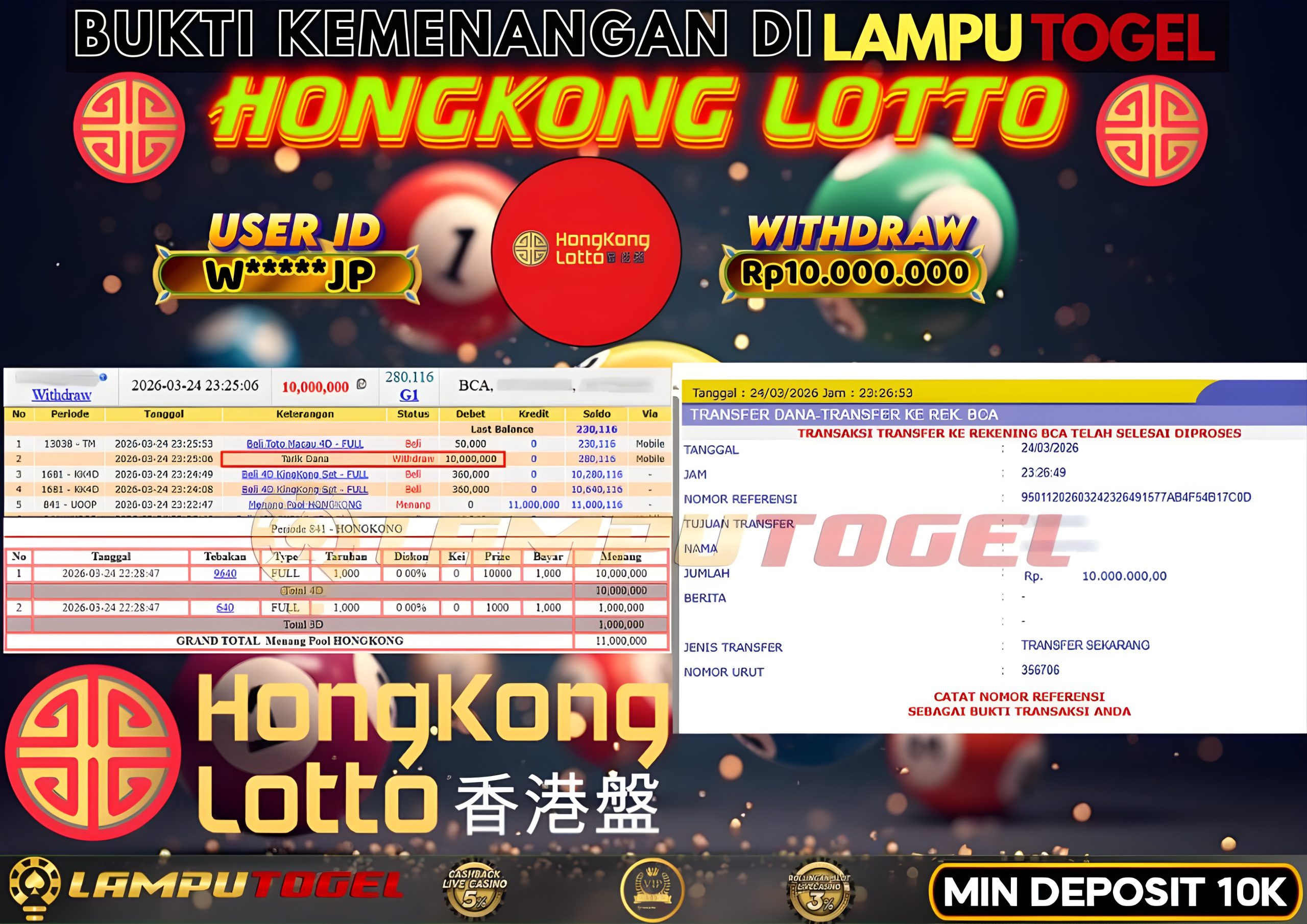 Bukti Pembayaran Lamputogel 25 Maret 2026 – Selamat kepada W****JP yang berhasil meraih kemenangan di pasaran HONGKONG LOTTO  sebesar Rp 10.000.000,– atau Sepuluh juta ribu rupiah ! Berikut ini terlampir bukti JP Lamputogel.